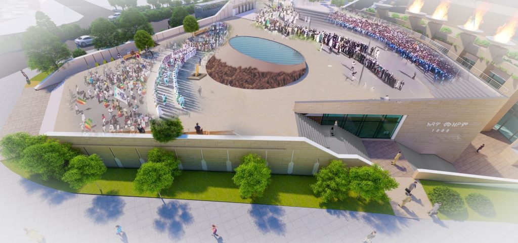 A CENTER WHERE WE COMMEMORATE OUR HEROS AND PASS THE HISTORIC VICTORY TO GENERATIONS. Adwa Museum Zero Km Project accommodates Adwa Museum, City hall and adjoining meeting halls, related public functions, Cinema, Café, Art Gallery and Exhibition, Library and other functions are integrated with the conference facility to create an important civic Building in Addis Ababa.